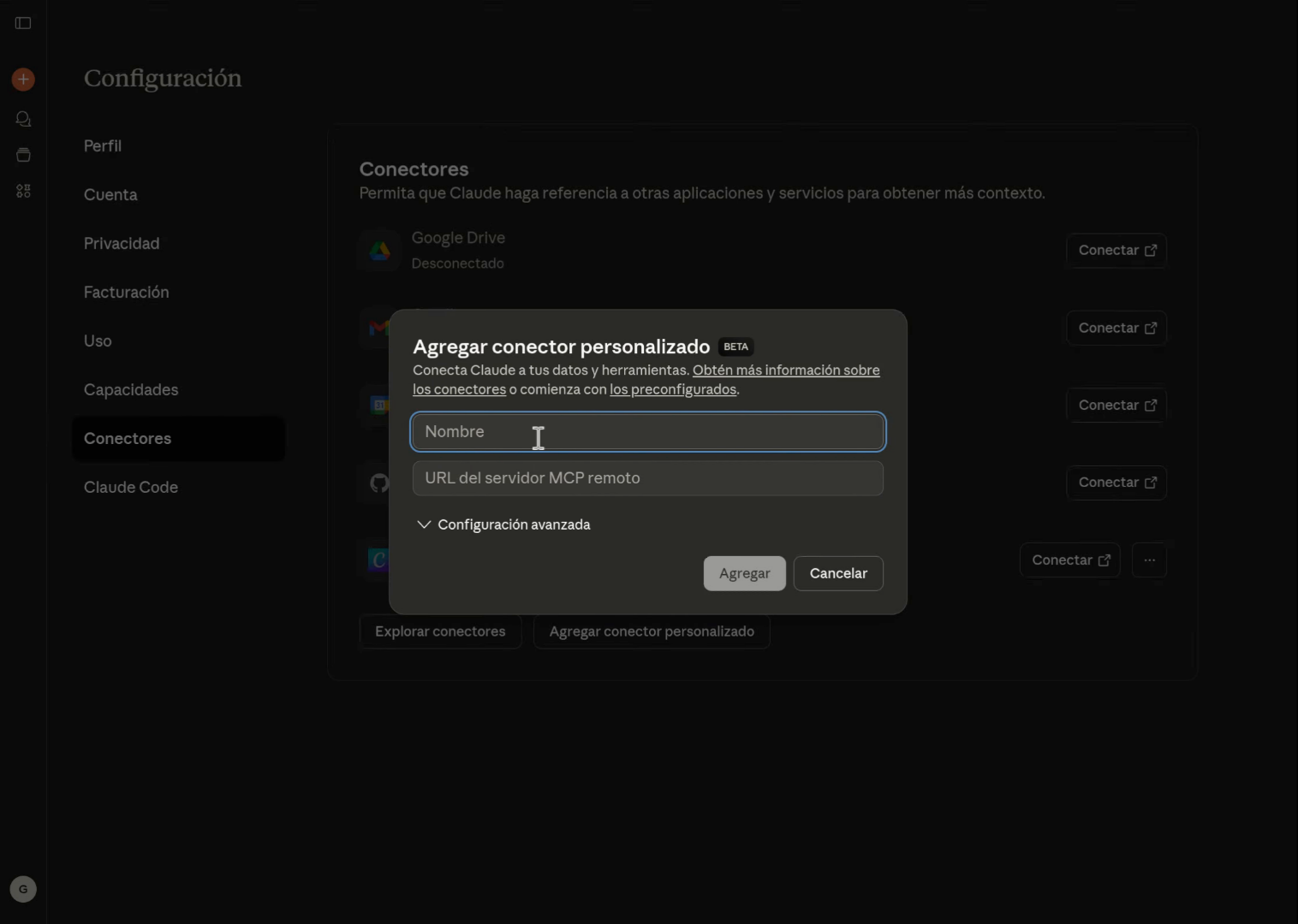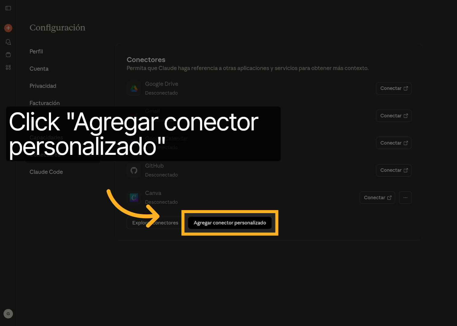 A continuación te mostramos cómo configurar el servidor MCP de Centum dentro de Claude.ai, paso a paso.